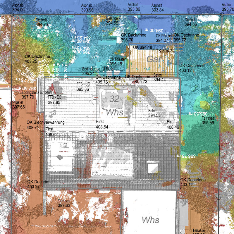 Abhängig von den schon vorhandenen Unterlagen prüfe ich individuell und entschiede ob eine Neuvermessung des zu bebauenden Geländes durchgeführt werden muss. Vorhandene und ermittelte Daten werden immer zusammengefügt und bilden eine stimmige Einheit. Somit erhält der Planer optimale Grundlagen und der Bauherr Sicherheit für sein Bauvorhaben. Auf Wunsch kann auch mit der örtlichen Umgebung vorab visualisiert werden.